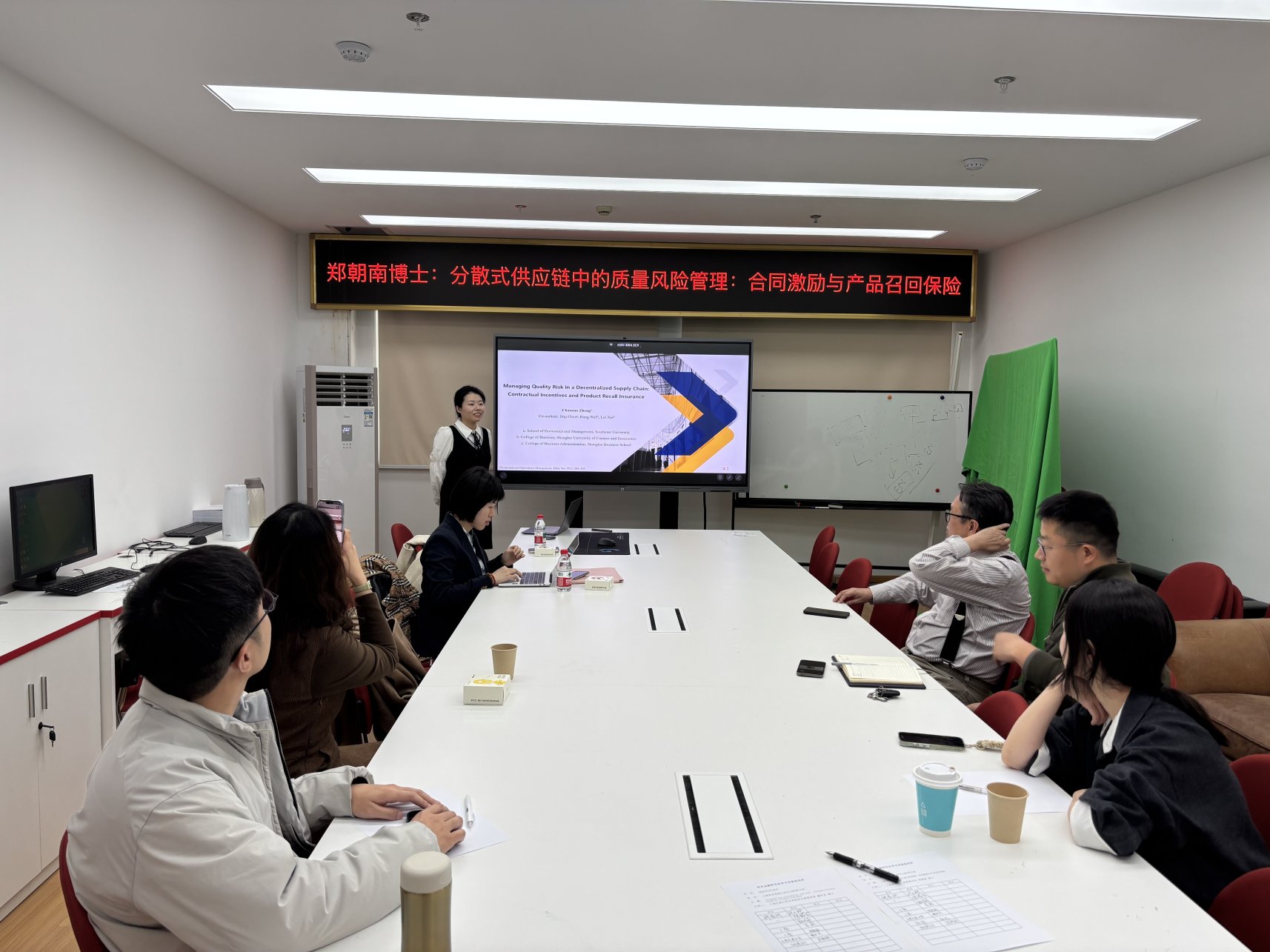 3月20日下午,商务经济学院财金研究所在徐汇校区1407研讨室,邀请到上海商学院工商管理学院的郑朝南博士莅临现场开展“分散式供应链中的质量风险管理:合同激励与产品召回保险”的论文报告。