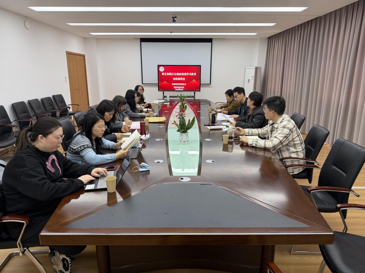 图为商务经济学院党总支开展树立和践行正确政绩观学习教育部署会现场