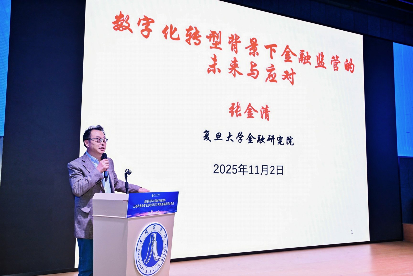 上海金融专业学位研究生教育指导委员会常务副主任委员、复旦大学金融研究院常务副院长张金清受邀作题为《数字化转型背景下金融监管的未来与应对》的主旨演讲。