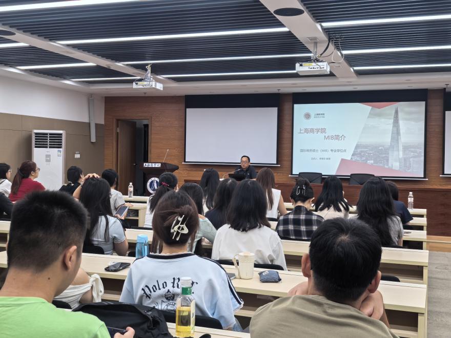 随后,国际商务专硕(MIB)新生在1401会场参加MIB专场会议。李育冬教授围绕学院人才培养特色与国际商务专业展开阐述,他指出学院拥有一支经验丰富、责任心强的导师队伍,将为同学们的科研与职业发展提供有力支持。李育冬教授还分享了往届毕业生在就业市场上的优异表现,并以此激励新生树立远大目标,脚踏实地、追求卓越。同时他特别强调了实习实践在研究生培养中的关键作用,指出实习不仅是衔接理论与现实的桥梁,更是锤炼专业能力、扩展职业视野的重要途径。
