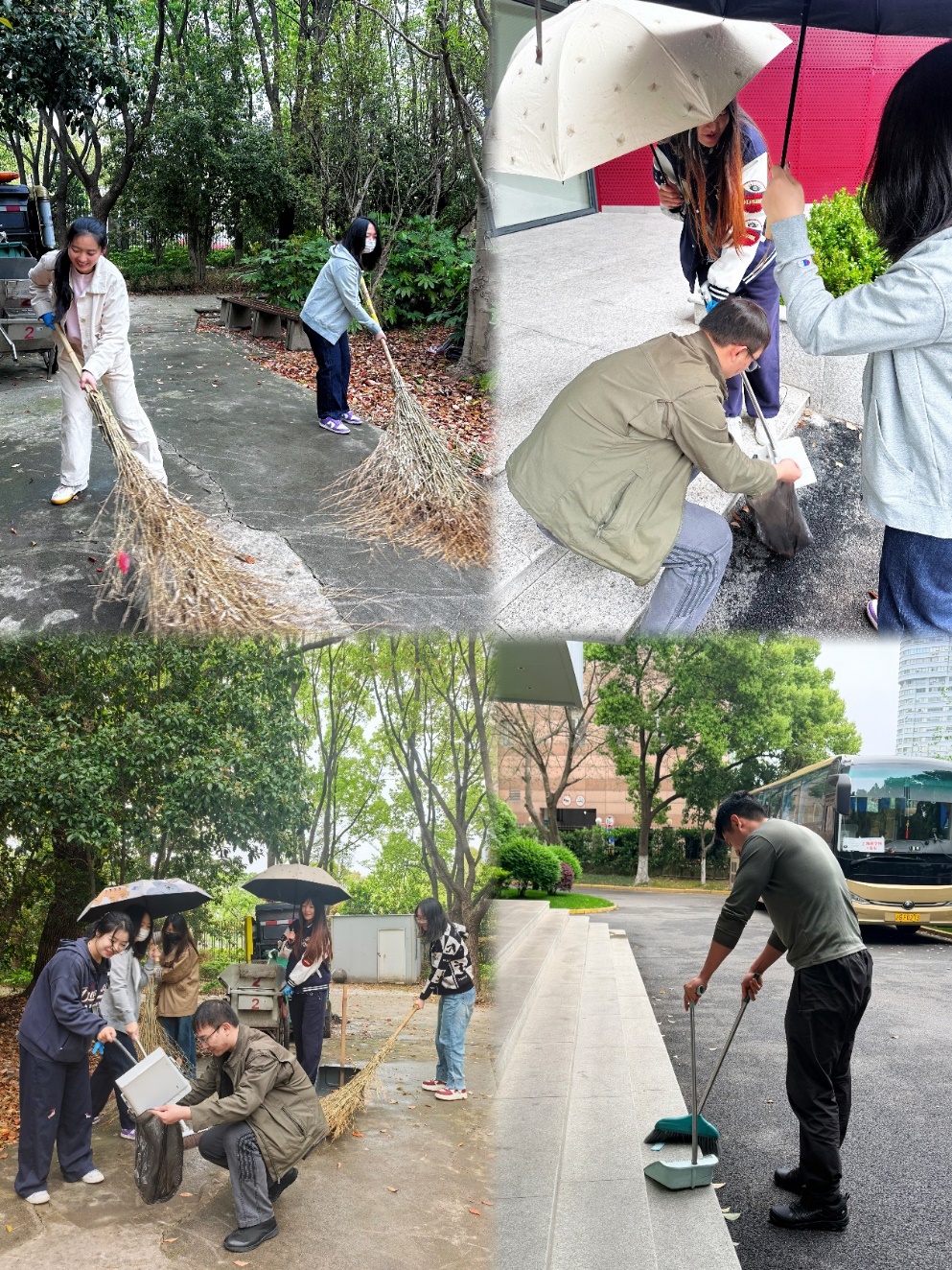 学院学生党支部组建奉贤、徐汇双校区校园清洁志愿服务队,同步开展校园环境整治行动。奉浦校区分队聚焦教学楼公共区域,细致清洁宣传栏、扶手,清扫地面垃圾,清理绿化带杂物;徐汇校区分队对校门周边、主干道及公共休息区进行全面保洁,清除烟蒂、落叶等卫生死角。