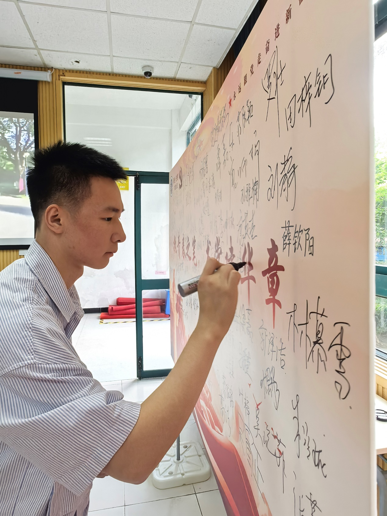 活动现场,新生们纷纷在签名板上写下自己的姓名,一笔一划间满是对大学生活的期待;学生党员则主动为新生与家长拍摄合影,为新生留存下校园生活的首个珍贵记忆。从签名板上密密麻麻的名字,到照片里一张张灿烂的笑脸,活动细节处处彰显着支部对新生的用心与关怀。