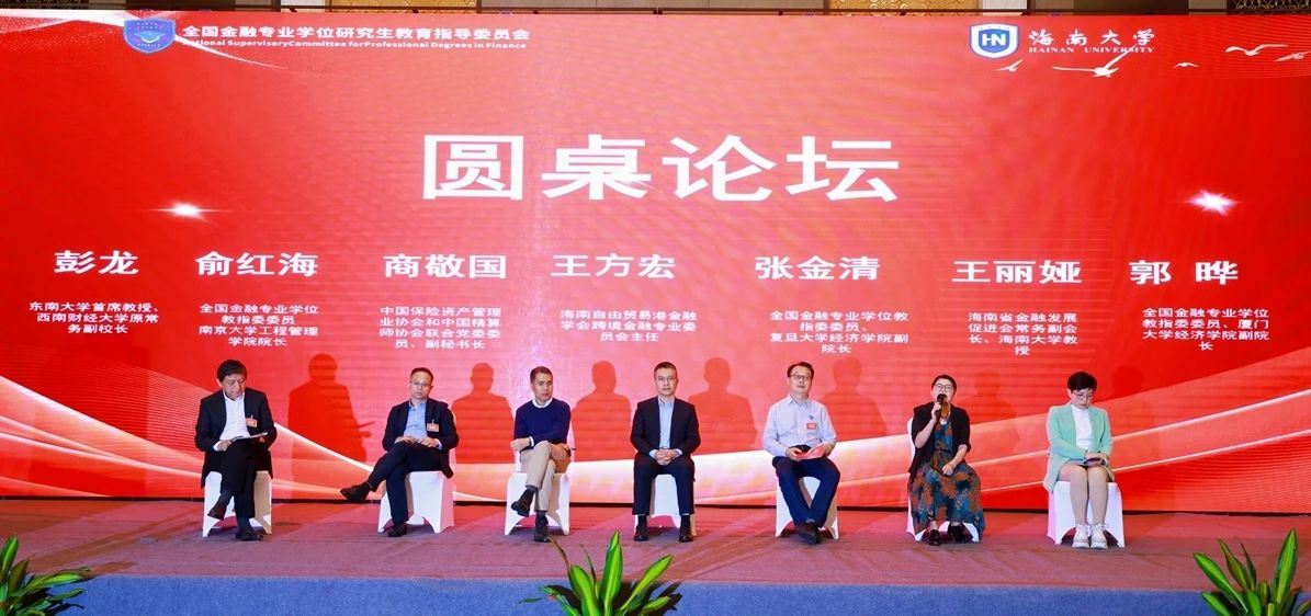 在圆桌论坛环节,由东南大学首席教授、西南财经大学原常务副校长彭龙主持,南京大学工程管理学院院长俞红海,中国保险资产管理业协会和中国精算师协会联合党委委员、副秘书长商敬国,海南自由贸易港金融学会跨境金融专业委员会主任王方宏,复旦大学应用经济学博士后流动站站长张金清,厦门大学经济学院副院长郭晔,海南省金融发展促进会常务副会长、海南大学教授王丽娅等嘉宾围绕主题展开了讨论。